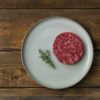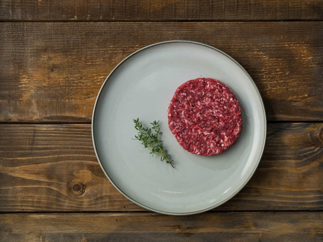 Hamburger tvorí mleté mäso, ktoré získavame z kostrového svalstva vrátane priliehajúcich tukových tkanív a tiež pomletím celých svalov. Pochádza z nášho vlastného ekologického chovu zvierat. Vďaka tomu v ňom nenájdete žiadne antibiotiká a hormóny. Navyše neobsahuje ani pridávanú vodu, takže mäso je vyzreté a odležané.